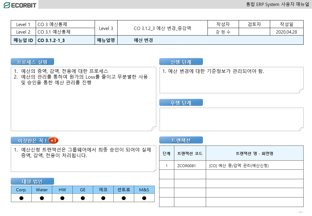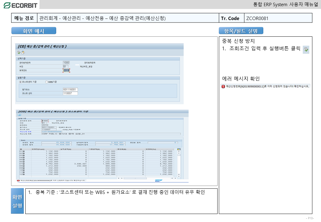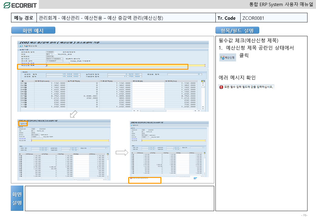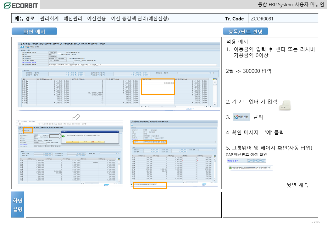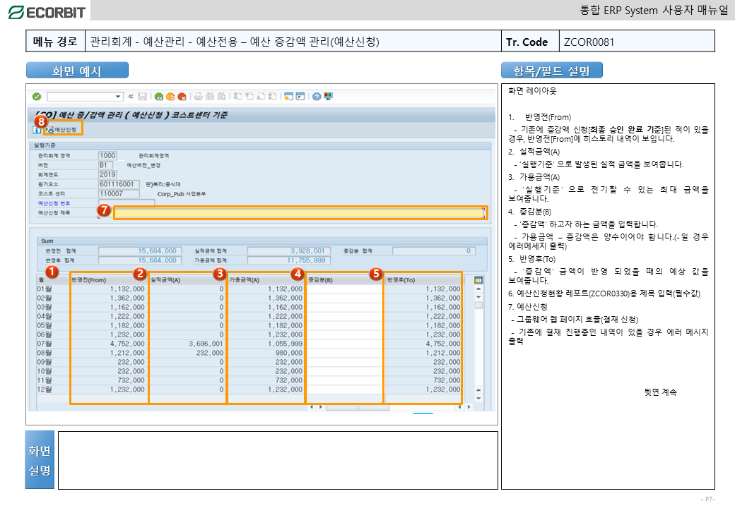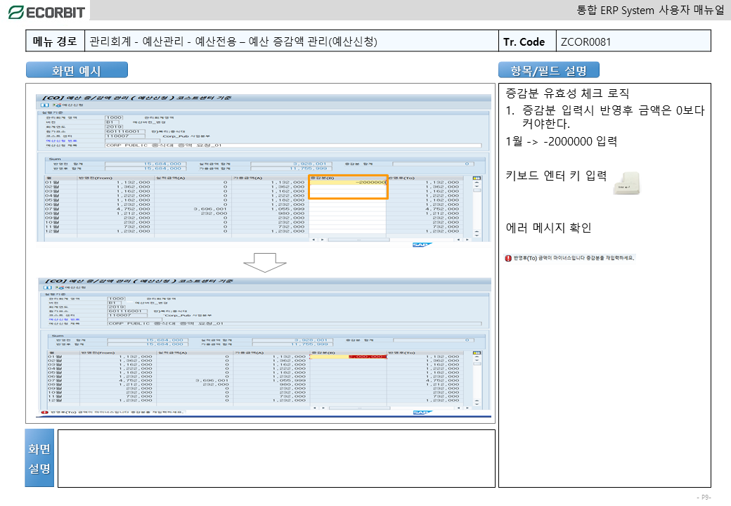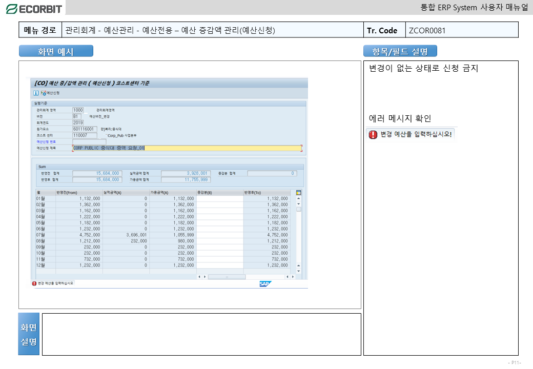 예산변경 - 증감액